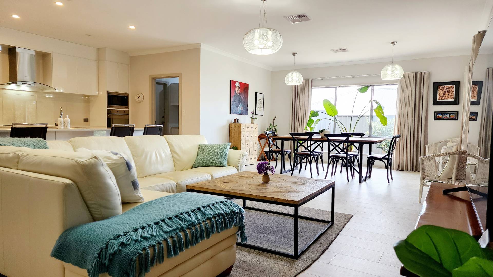 The central open plan kitchen, lounge and dining area is this homes' core, being well equipped with Smeg appliances and generous walk in pantry.